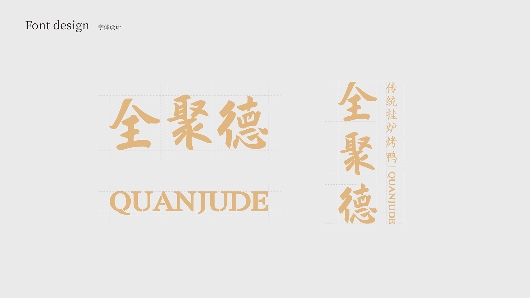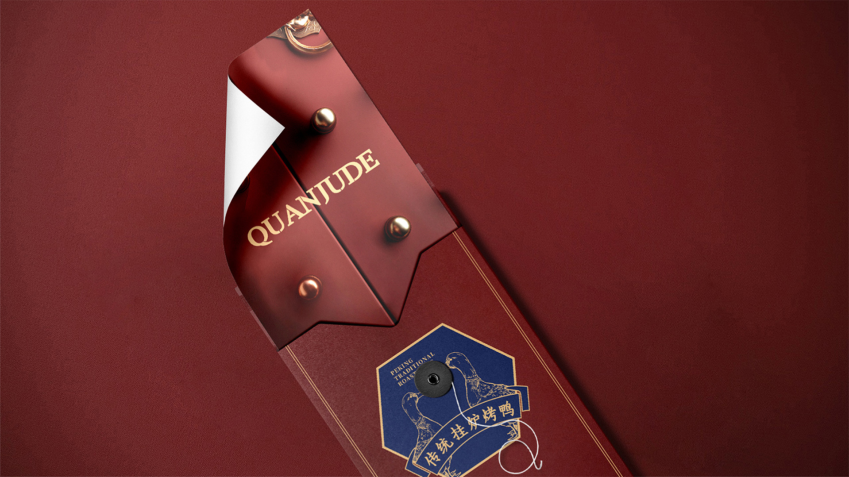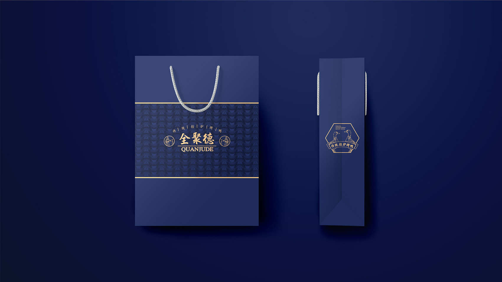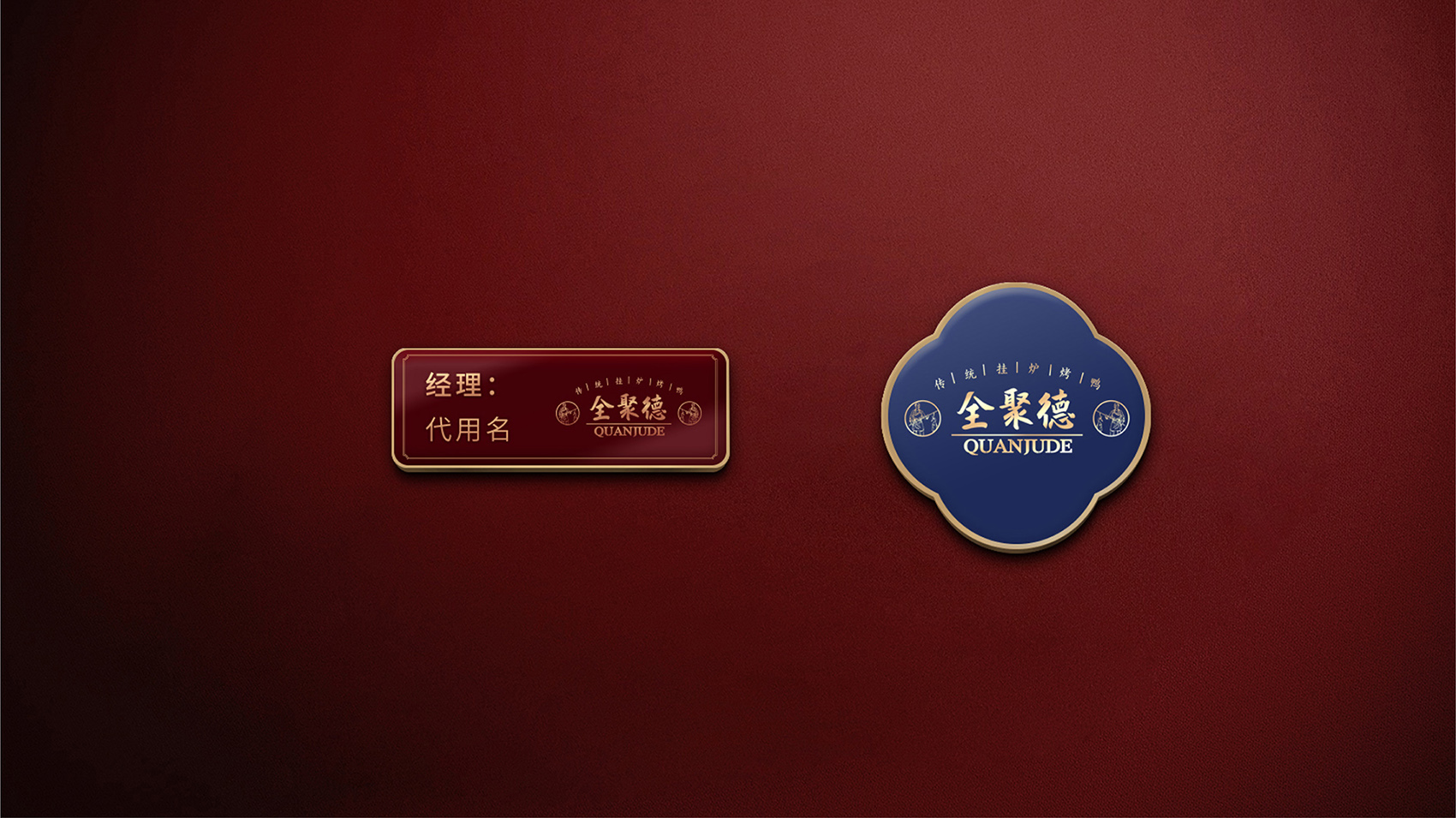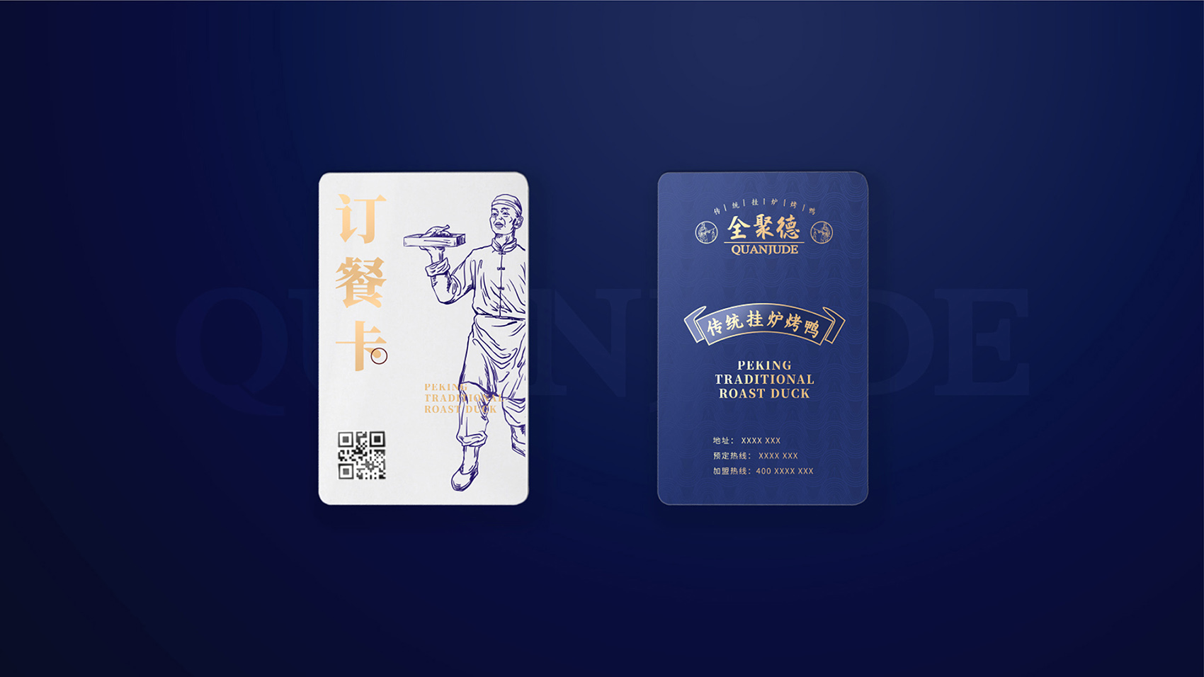 创意思路:品牌整体视觉采用中式复古风格,结合中国六边形、梅花形窗花、牌匾边框,再融合传统楷体与大宋字体,呈现全聚德国字老字号的高端品质与浑厚的文化底蕴。辅助图形通过插画线描的表现方式,展现全聚德烤鸭的制作手艺过程。